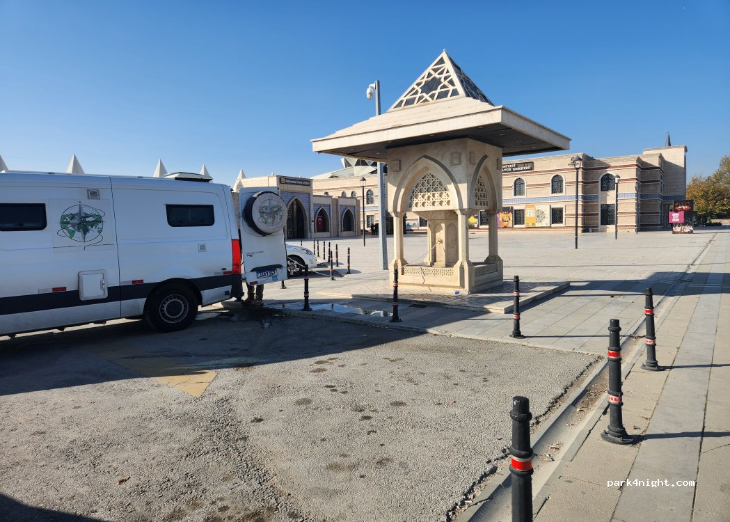 Mixed, large, free parking in front of the Museum of Culture. 300m to the Mevlana Museum. Whether you could spend the night, we did not try.