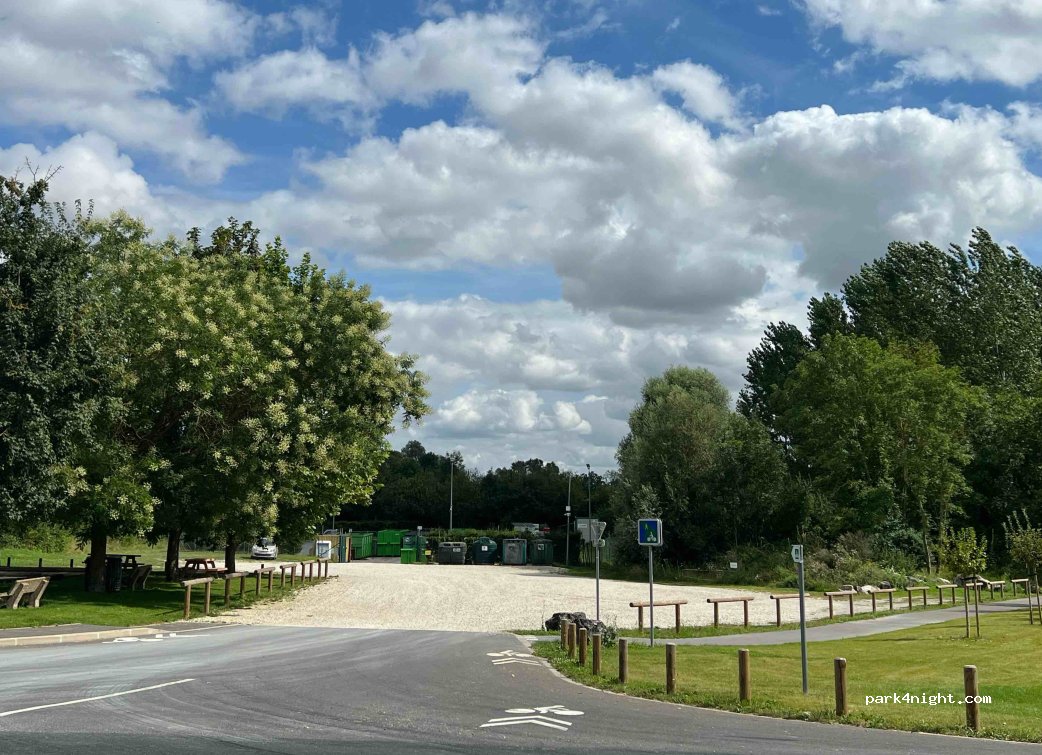 Day time this parking area was busy, because of the recycling centre. Night time was fine. We had a quiet night and no problems. Mosquitoes!