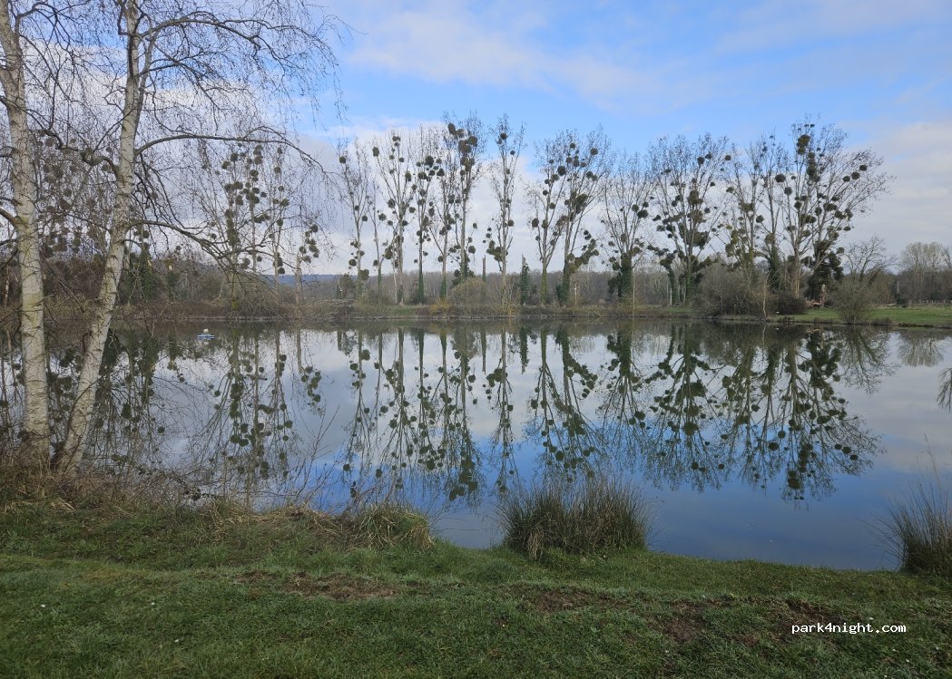 Arrivé au restaurant les 3 étangs, demandé au patron ou l'on pouvait stationner, on s'est mis sur l'herbe à côté de l'étang. Accueil impeccable, endroit très calme. Le soir manger au restaurant, cuisine excellente. Si vous mangez au resto, le patron fait cadeau des 6 euros de l'emplacement. Je recommande vivement (JJ. lebarbu=