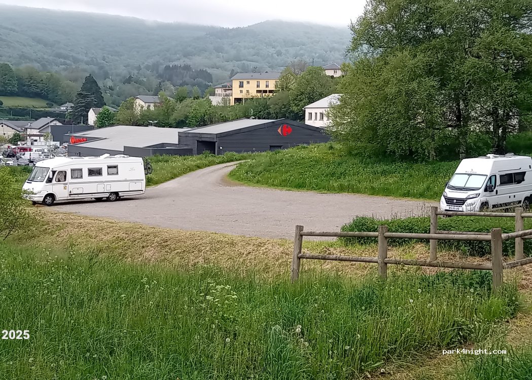 Plutôt parking q'une aire accessible à tous les gabarits mis à la disposition des camping-caristes par les "Salaisons Oberti et fils". Zone stabilisée, un peu inclinée mais proche du Carrefour Market, de la pharmacie, de la station service et de la laverie automatique AVS. Un stationnement idéal pour les tâches domestiques et l'approvisionnement logistique. Réception satellite et 4G optimale.