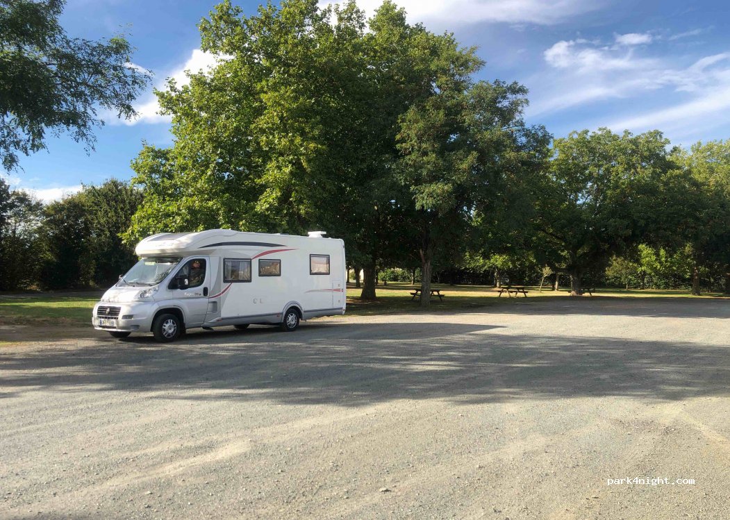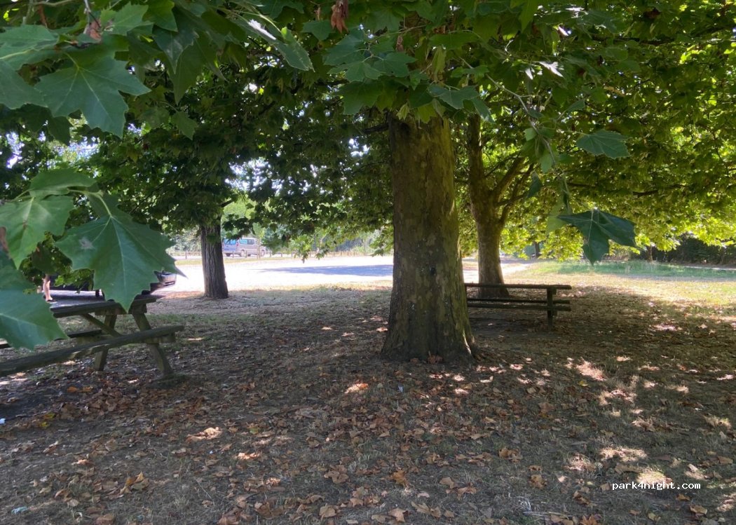 Spacieux avec 7 tables de pique nique . Très bien pour faire une pause en journée . La route qui la longe est très passante