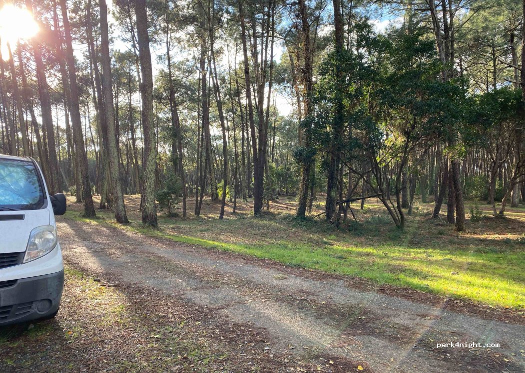 A compter du 30/09, le stationnement y est autorisé et gratuit la nuit. nous y avons passé une nuit très calme le 30/10 ; La proximité de la plage (par la forêt ou par la route) est vraiment top. je recommande cet endroit ; Extra