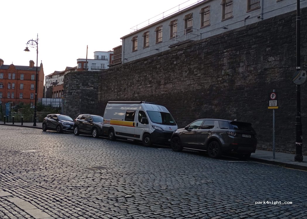 Une nuit passée en van aménagé pour zéro euros ! En effet l'horodateur n'est obligatoire que de 7am à 7pm. Idéalement situé pour visiter Dublin à pied, l'endroit est un peu bruyant car c'est une rue passante mais celà n'est pas dérangeant pour y passer la nuit. Seul 4 places sont disponibles maximum mais Je recommande !