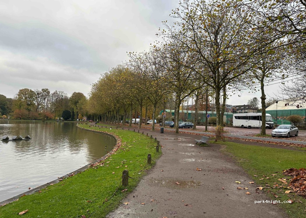 Nous nous sommes garés le long de l’avenue, sous les arbres. Beaucoup de place, très calme le soir, joli parc avec étang, un joli petit centre-ville à 10 min à pied.