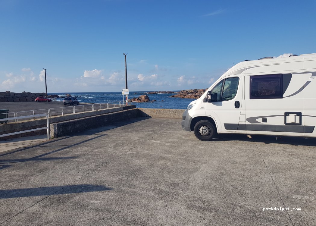 C'est un endroit magnifique, nous y avons dormi trois nuits tout seul sans problème. La police passe mais nous laisse tranquille. Les balades côtières sont magnifiques. Le parking est protégé en cas de tempête de secteur sud. Les habitants sont aimables avec les visiteurs. Il y a de l'eau aux douches.