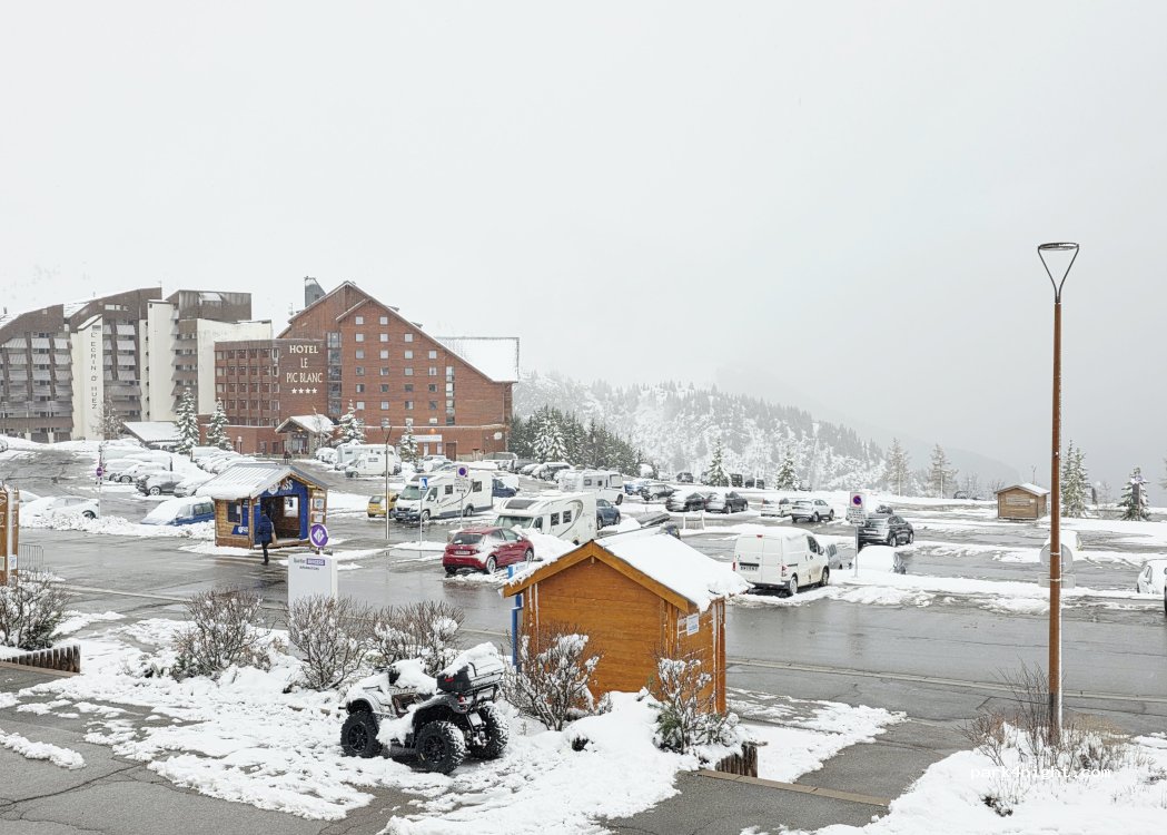Parking de l'Altiport ski in and out, la piste de ski se trouve juste à quelques pas au-dessus du parking. Très calme, toilettes automatique. Excellent emplacement, merci é l'Alpe d'Huez