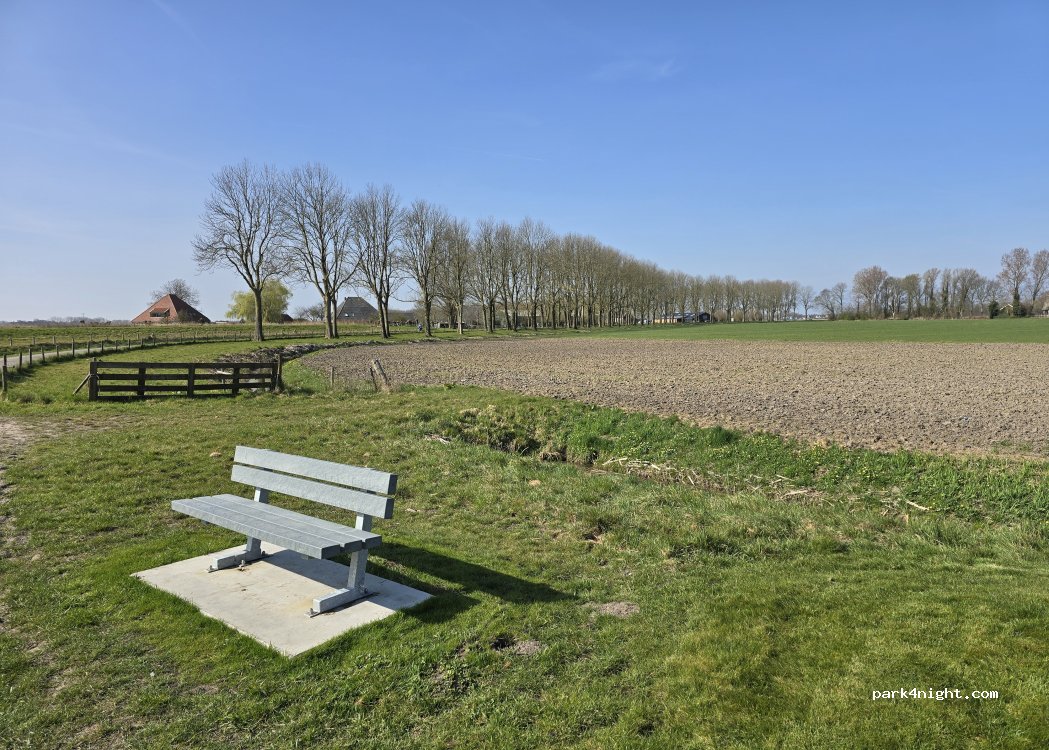 Eenvoudige, rustige plek waar we de nacht doorgebracht hebben. Geen voorzieningen maar een prachtig uitzicht over een kanaal en tussen het boerenland. ‘s Morgens een paar wandelaars en een hardloper gezien.