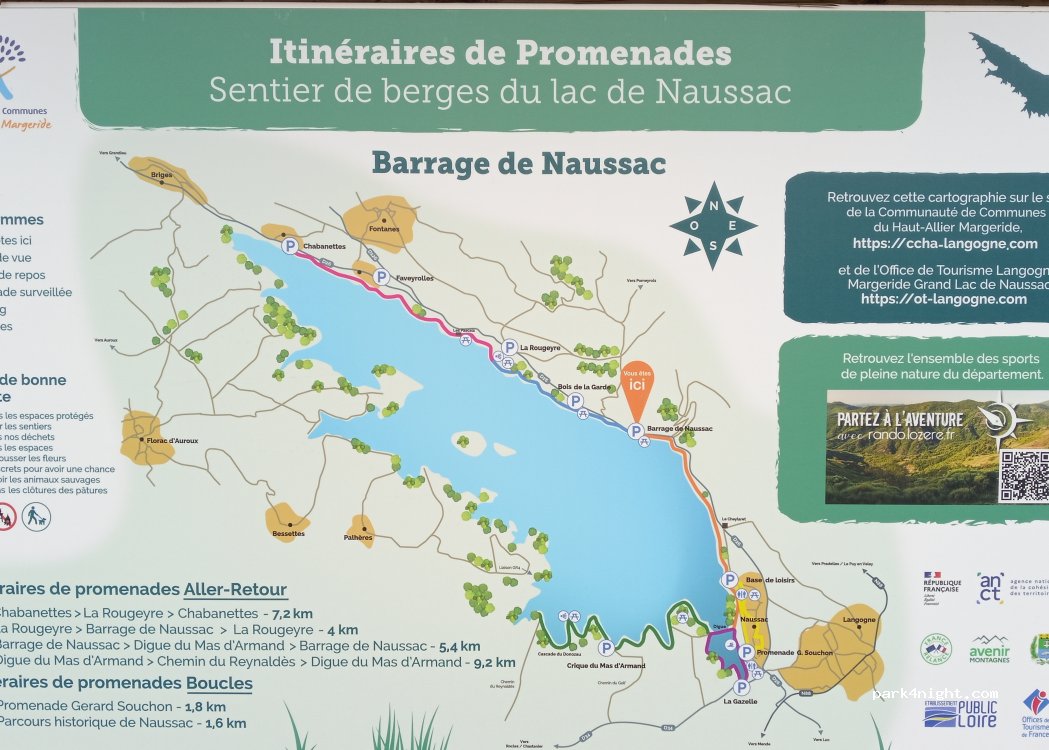 Parking gratuit sans service proche de la route mais calme la nuit !!! pour un départ soit en vvt ou à pied pour le tour du lac de naussac !!! le sentier est difficile 27 kms environ !!!
