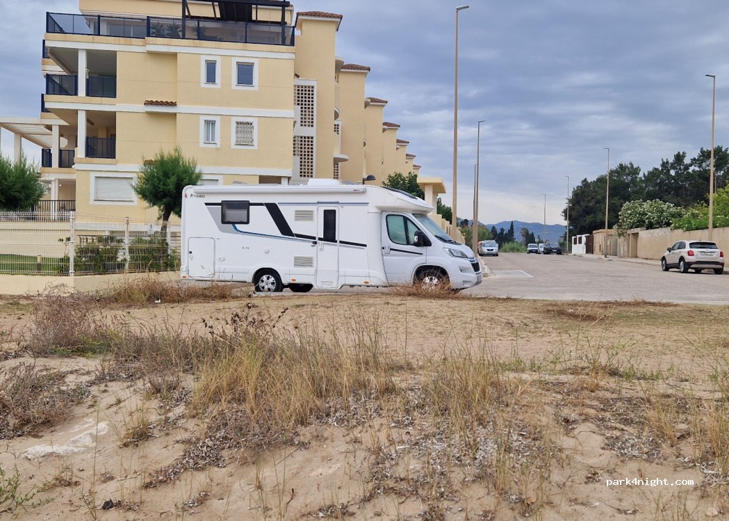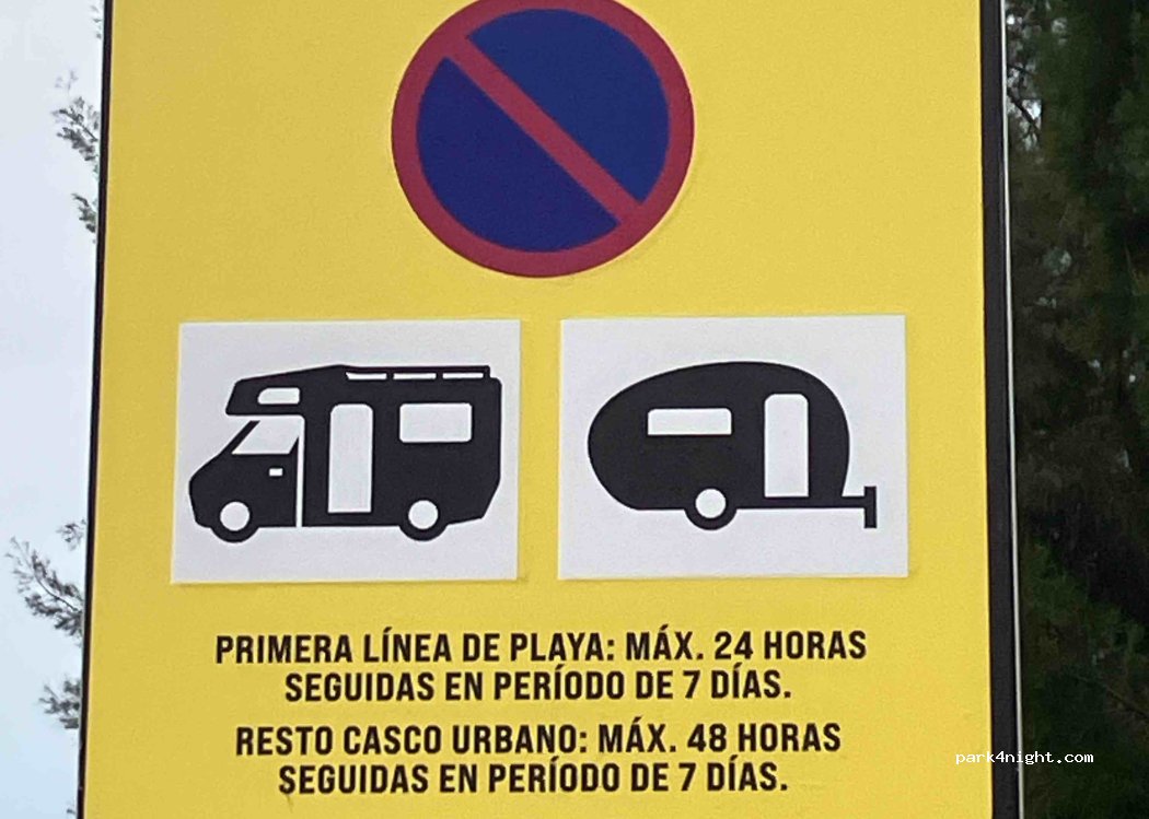 Quiet parking without services on the beach. On asphalt and at the end of a street. There are more similar car parks in the area. Very quiet and solitary in low season, even on vacation, but it is surely impossible to park in summer. According to Instruccion 08/V-74 (PROT 2023/14 08 V-74) of the MINISTERIO DEL INTERIOR, chairs, tables, awnings or any camping behaviour are prohibited.