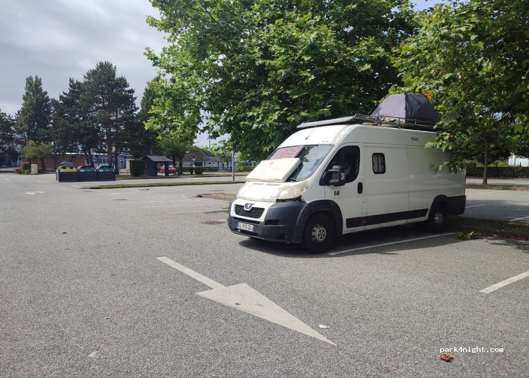 Endroit idéal pour passer la nuit après une visite de la région. Le coin est calme et proche des commerces. Nous étions trois camping-cars et avons passé une nuit tranquille. Malgré la brocante du dimanche matin dans le gymnase voisin, l’endroit reste paisible. On recommande sans hésiter !