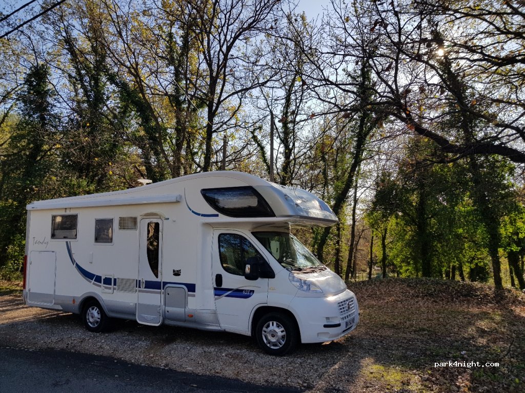 Spiazzo a bordo strada anche per un veicolo abbastanza grande. La strada per raggiungere il luogo é molto stretta e consigliata di giorno. Noi abbiamo soggiornato sabato notte e il traffico notturno era piuttosto intenso e con veicoli a grande velocità. Non proprio adatto a chi cerca una notte tranquilla.