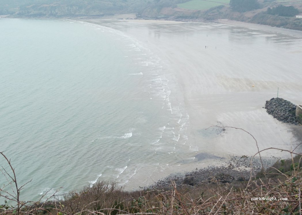 Un spot extra. 5 places bien délimitées en haut de la falaise avec vue sur le port et la plage de Behec. Fin septembre, calme assuré. Peu de passage sur le circuit des falaises. Un peu de sport pour descendre par la route au port et remonter par le sentier des douaniers présagent d'une bonne nuit.