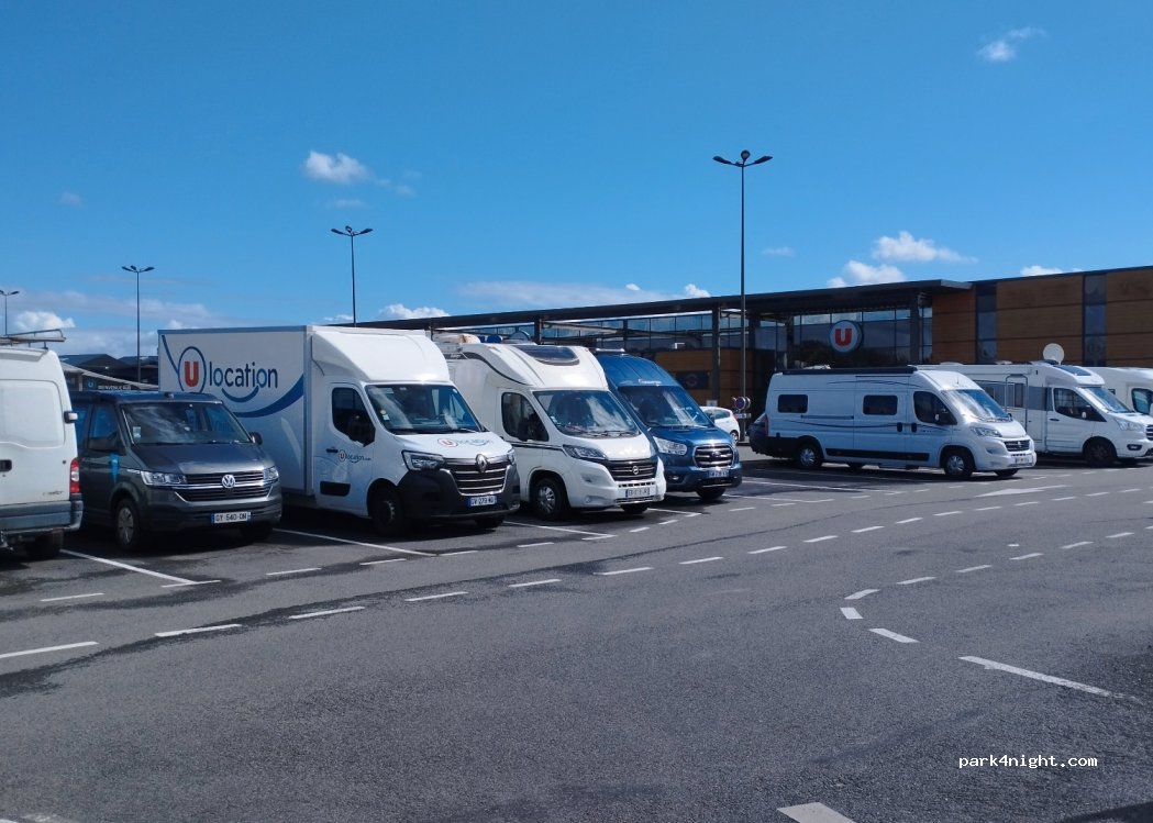 Pour info : 1er P camping car face station 5 places - 2ème P camping car direction lavage derrière magasin 12 places. Merci à U pour cet accueil nous avons passé une nuit en toute tranquillité, et profiter de faire le plein de courses alimentaires et d aller au port déguster les bonnes huîtres de Cancale