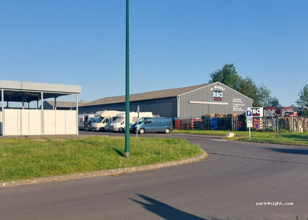Pas génial, trop de bruit avec les camions de livraisons matinales, et aboiement des chiens de garde de l'entrepôt juste derrière les camping-cars.