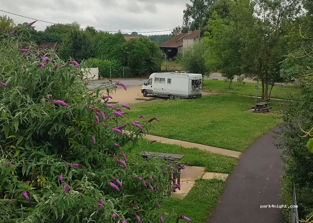 Super endroit pour passer la nuit et la journée. Facile pour se garer, très calme. Voie verte en accès direct, tables pour pique-niquer.