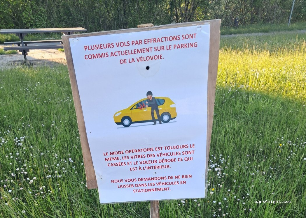 Parking au bord de là vélo voie et de la Seine tables de pique nique Très calme avons passé une belle nuit tranquille Je recommande