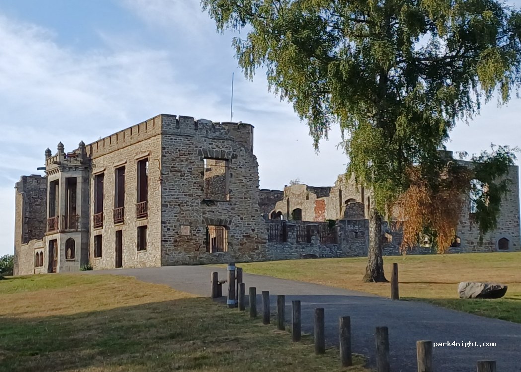 Magnifique château en ruine, parking calme la nuit à part les «détonations» à intervalles régulières / un peu bruyant la journée avec les enfants etc.. Coucher de soleil sympa