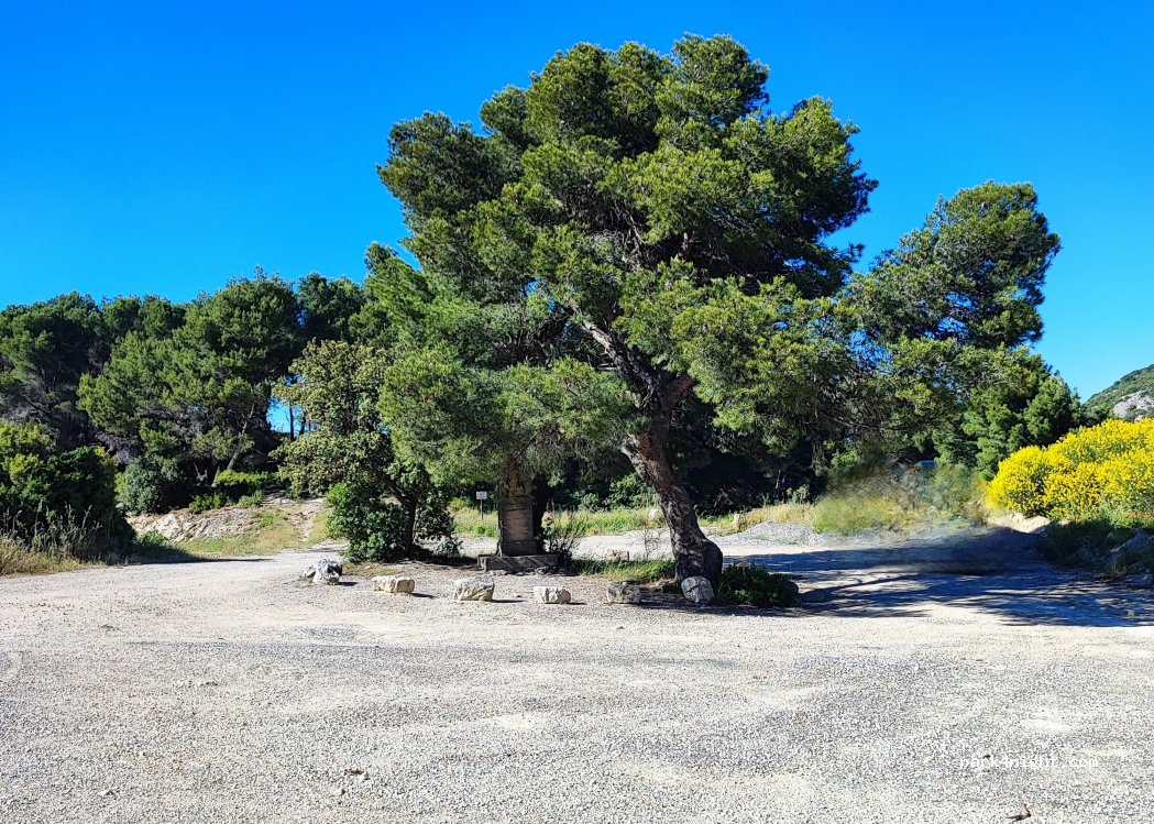 Riesiges Naturgebiet (mehrere Fahrzeuge ohne Problem) im Kreisverkehr um einen Hain organisiert. Ziemlich flach, wenig befahrene Straße. Sehr schöne Aussicht auf die Spitze.