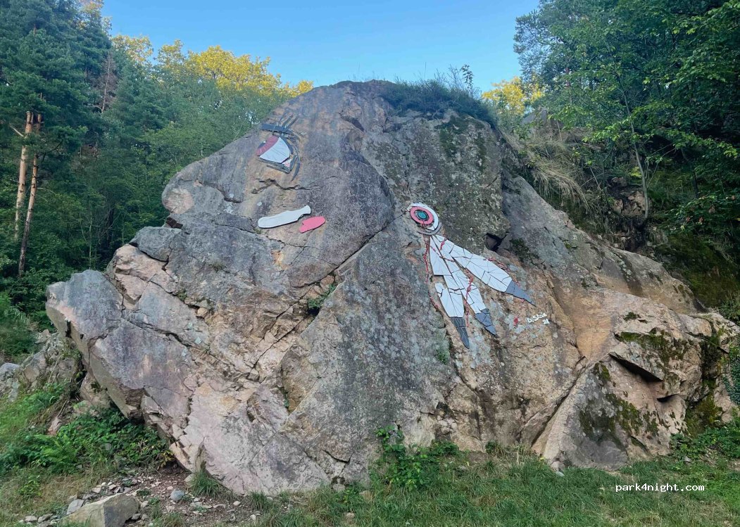 Car park of the Volerie des Aigles at the level of the castle of Kintzheim. Parking which must be used for visiting during the opening period from the end of March to the beginning of November (this space still seems public). Outside this period the car park is always open. Large space, surrounded by trees, on the side of the road but really very little used, and one way. Suddenly access is through the village of Kintzheim. Quiet surrounded by nature.