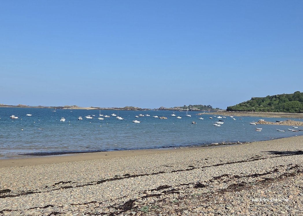 Très grand parking en légère pente avec accès direct à la plage de galets. Très calme. Largeur à 2,20m mais passe en van. Toilettes propres sur place, aire de jeux, table pique-nique. Boulangerie à 3min (en voiture), embarquadère pour l'île de Bréhat à 5 min (en voiture).