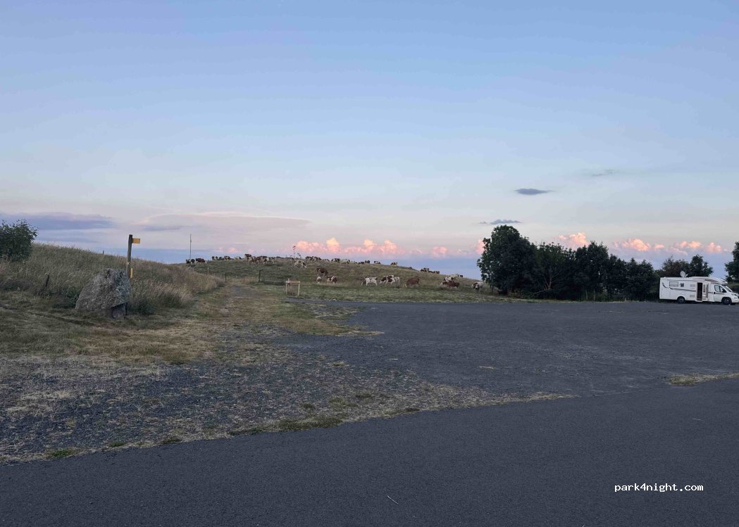 Parking privé et interdit la nuit. On peut dormir sur le parking en bas du chemin de croix. Facile d'accès pour tous les camping cars. Bonne réception télé mais pas d'internet.