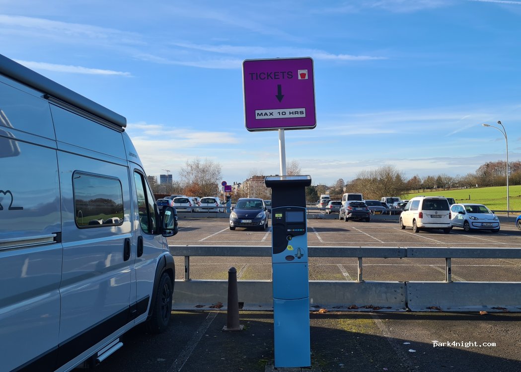 haben uns an die Empfehlung und Aufforderung gehalten, waren nur tagsüber zum Sightseeing hier. großer Platz, keine Probleme für 6,5m Parkplatz ist hervorragend mit Bus aus und in die City erreichbar, 4 Linien alle paar Minuten, abends längerer Takt Samstag/ Sonntag keine Gebühren