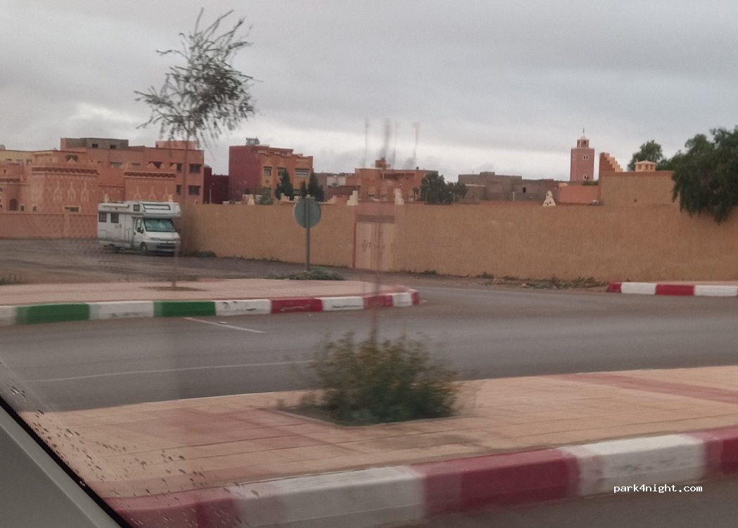 pratique et calme. beaucoup d'espace pour se garer. le centre ville à 700m terrain plat possibilité de balades dans les jardins en bord du dades. aucun service à proximité.
