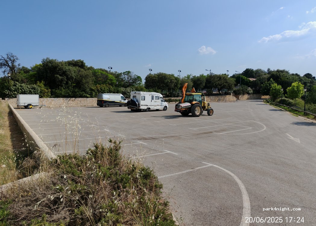 Parking sur macadam avec beaucoup de places et très peu fréquenté même en haute saison. Nous étions 2 sur ce grand parking et il semblait autorisé. La vue est magnifique. Si vous avez un peu de courage pour monter jusqu'à la chapelle Notre-dame qui n'est pas très loin, cela en vaut la peine ! Le paysage est magnifique de là haut. Je recommande cet endroit
