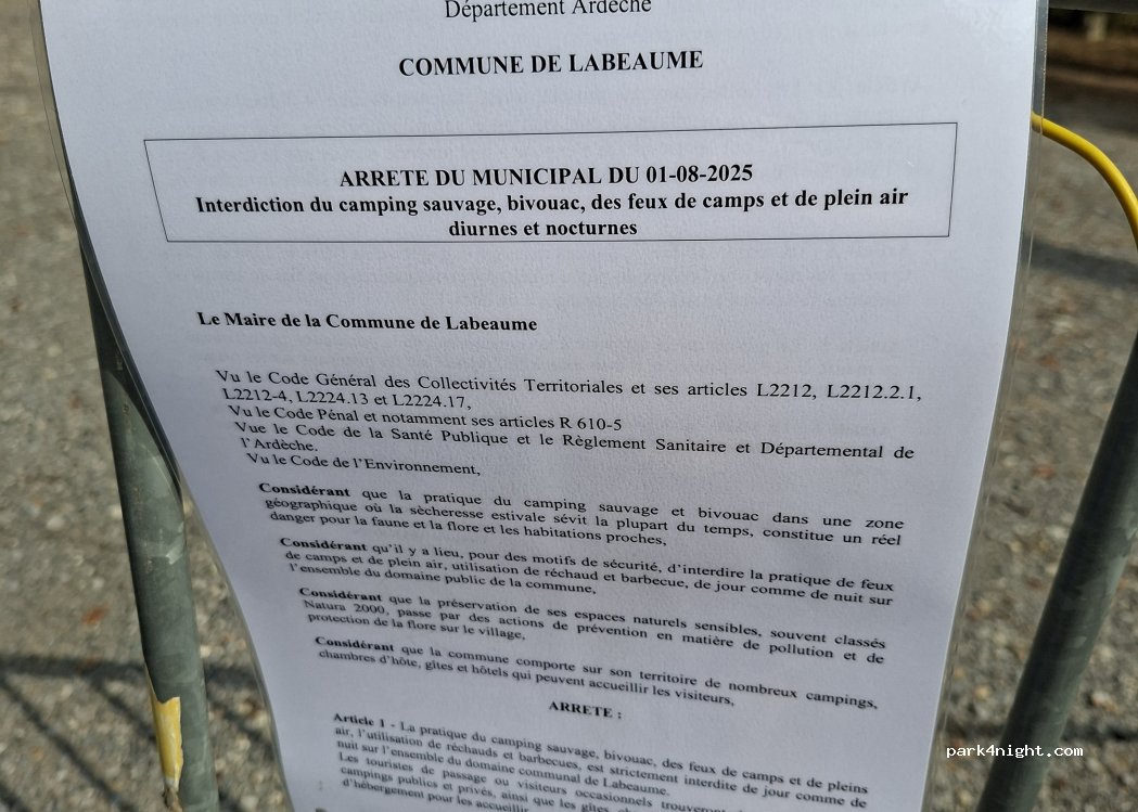 attention : le stationnement sur le parking comportant les conteneurs à ordures est interdit. Par contre celui du dessus et vraiment top pour passer une nuit au calme.