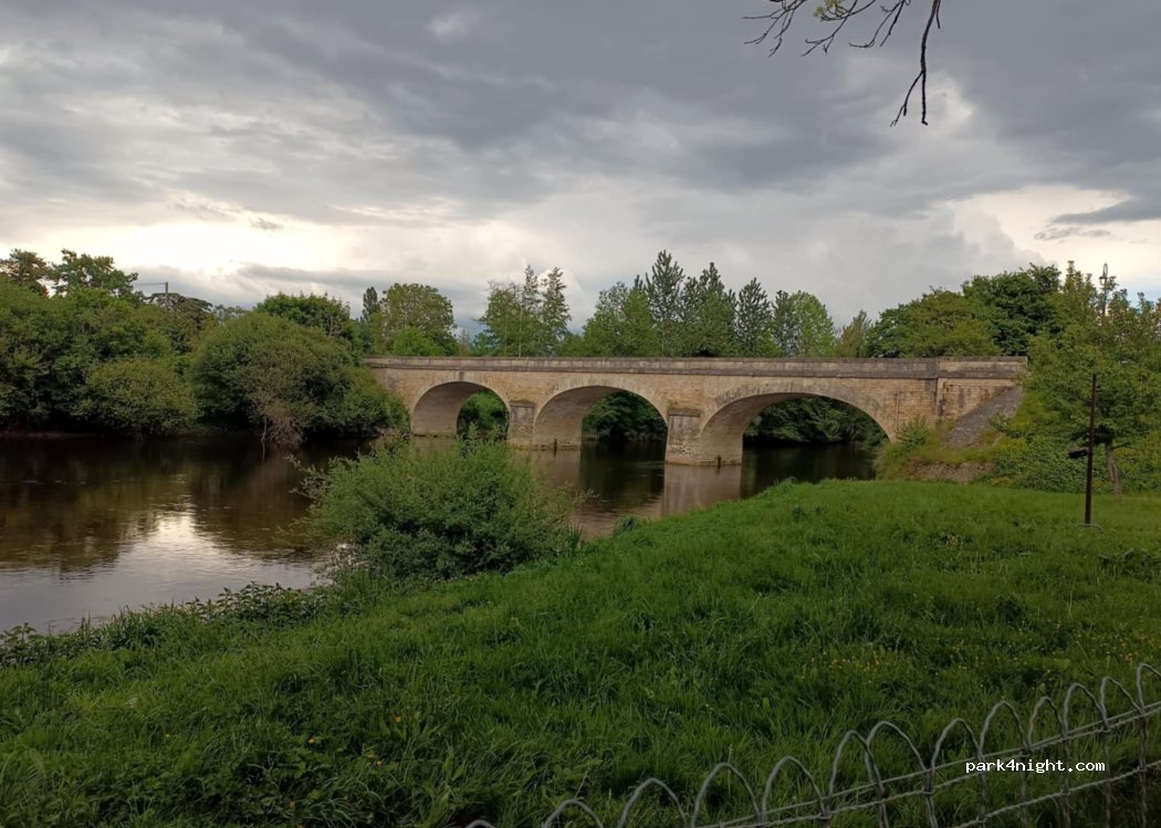 Un grand merci à la commune! Spot très agréable avec vue sur le magnifique pont qui enjambe la Gartempe. Tranquille et calme, avec les riverains toujours prêts à discuter, très sympathiques. Concert de croassement le soir. Le seul hic, mais la commune n'y est pour rien, c'est la présence de mouches, si vous vous mettez à côté du manège à chevaux au fond du parking.