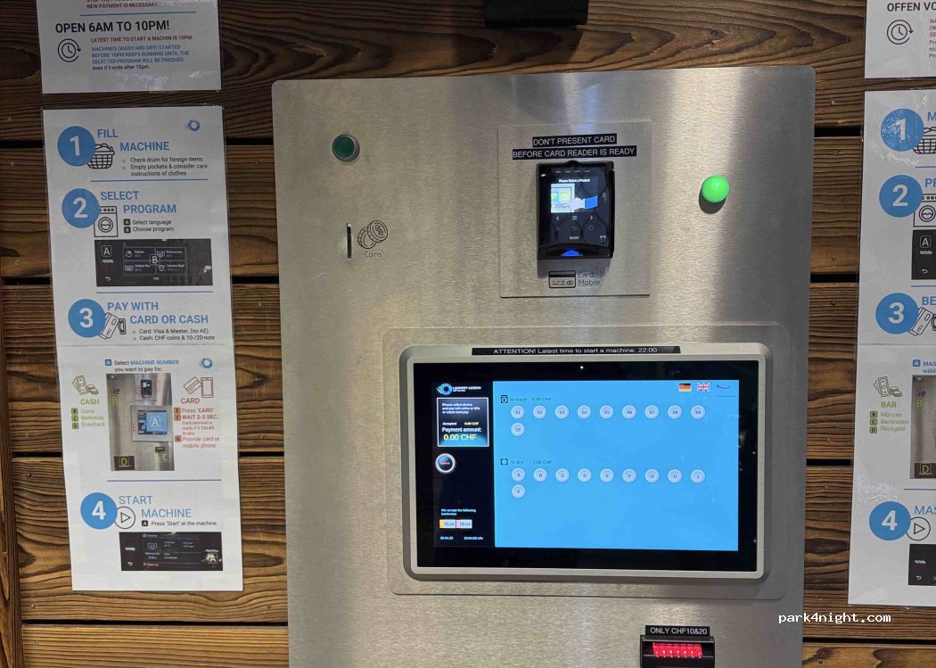 Laverie bien placée pour allier l’utile à l’agréable car nous en avons profiter pour visiter Lucerne. Paiement par CB possible (9CHF pour laver et 7CHF pour sécher). Lessive incluse. Petit salon agréable pour patienter avec distributeur de boissons et de friandises. Stationnement payant aux alentours.