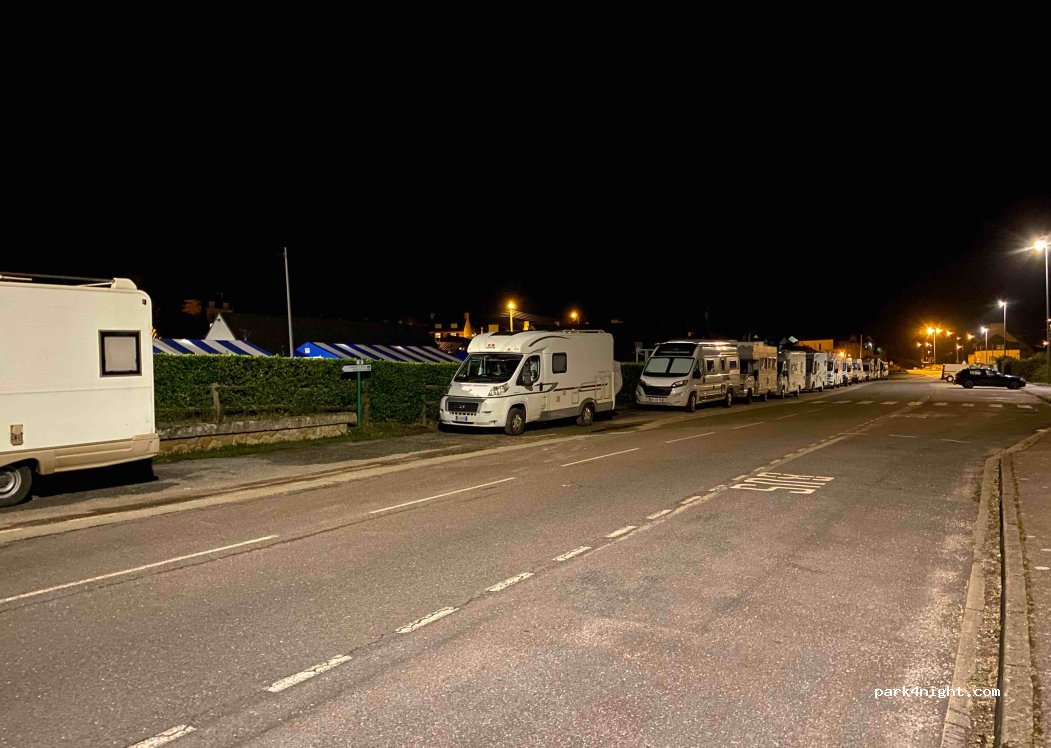 Parking lambdas mais qui autorise les camping-cars nuits et jours, léger bruit de circulation, et présence de trois fétards au niveau de l’arrêt bus mais qui n’engendre pas énormément de gêne.