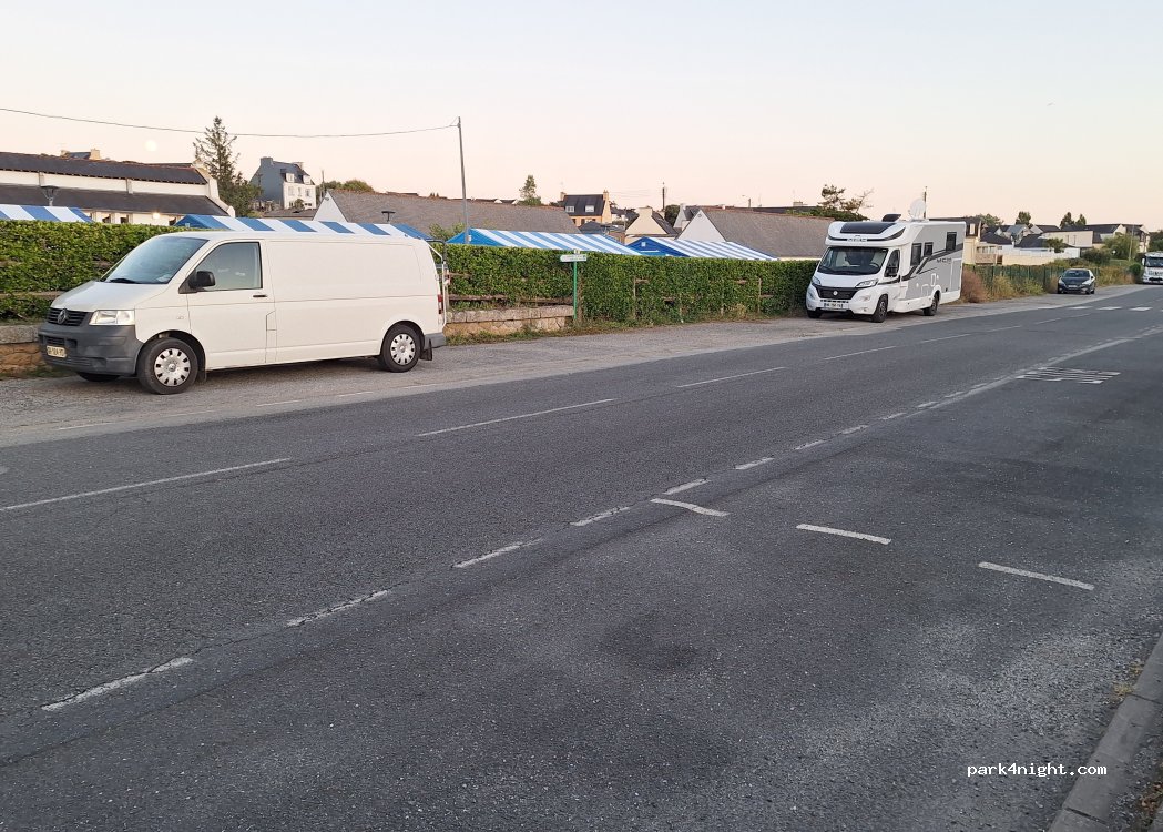 Proche du port, des restaurants et juste au dessus du Super U. Sur le bord d’une route, peu de passage mais peut-être dérangeant pour certains. Dommage que le seul lieu où il soit autorisé de passer la nuit en van/CC à Camaret soit sans toilettes publique ni poubelles, alors que le reste de la ville est plutôt modèle dans ce secteur la…