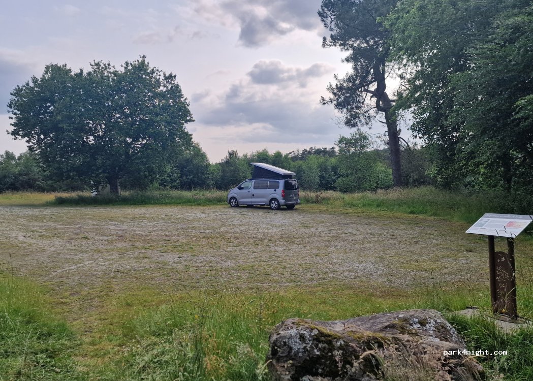 Site calme et tranquille ou nous avons passé une bonne nuit, sur un espace plat et stabilisé. Toilettes et eau fermé. Réveil au chant des oiseaux. le site est un départ de randonnées : circuit des Chevaliers de Saint Jean de Jérusalem 13,6 km. Le chemin est impraticable: hauteur de plantes de plus d'un mètre, fougères, ajonc, ronces, genêts, orties sur 80% du parcours. Impossible de randonner.