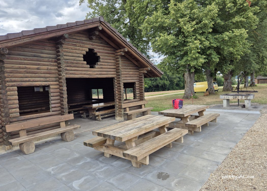 Magnifique place avec bancs tables et possibilité de griller. Un peu vivant ci il y à des entraînements de foot, et ci les cabanes sont louée, mais à partir de minuit. Un silence parfait. Petit déjeuner aux soleil à partir de 7h00.