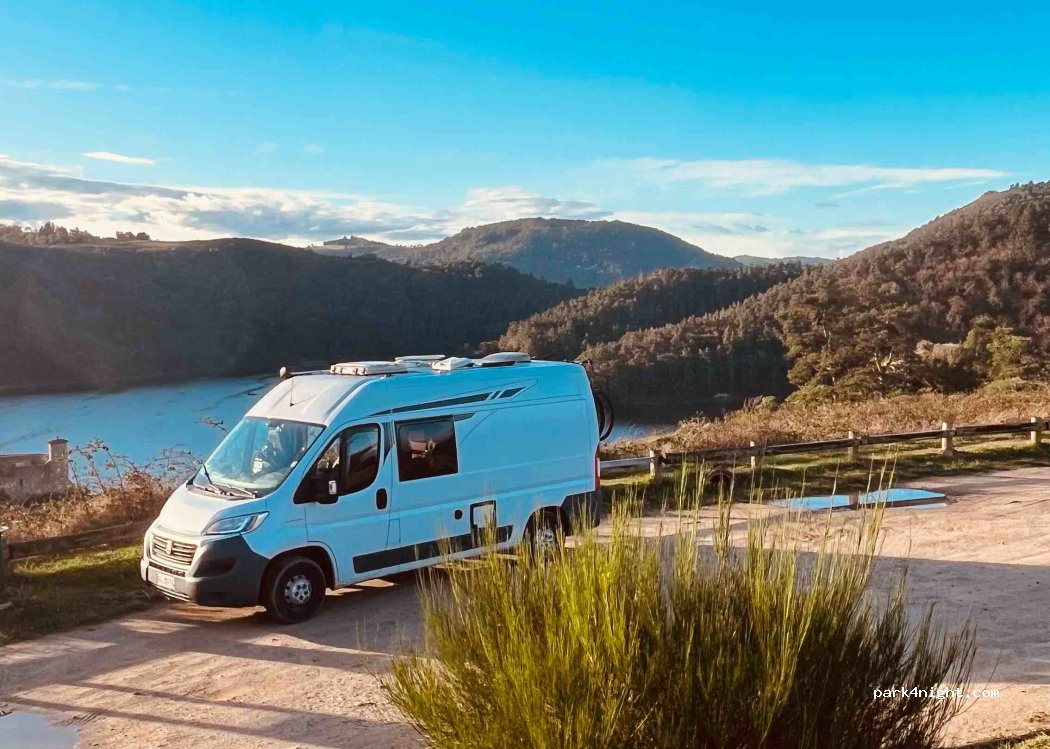 Nous avons passé une nuit sur le parking juste au dessus car celui la était déjà pris. Mais nous n’avons vraiment pas été dessus par le calme et la vue. Dommage que des déchets traînent par endroit. Le barrage était en travaux et la route barrée un peu plus pas.
