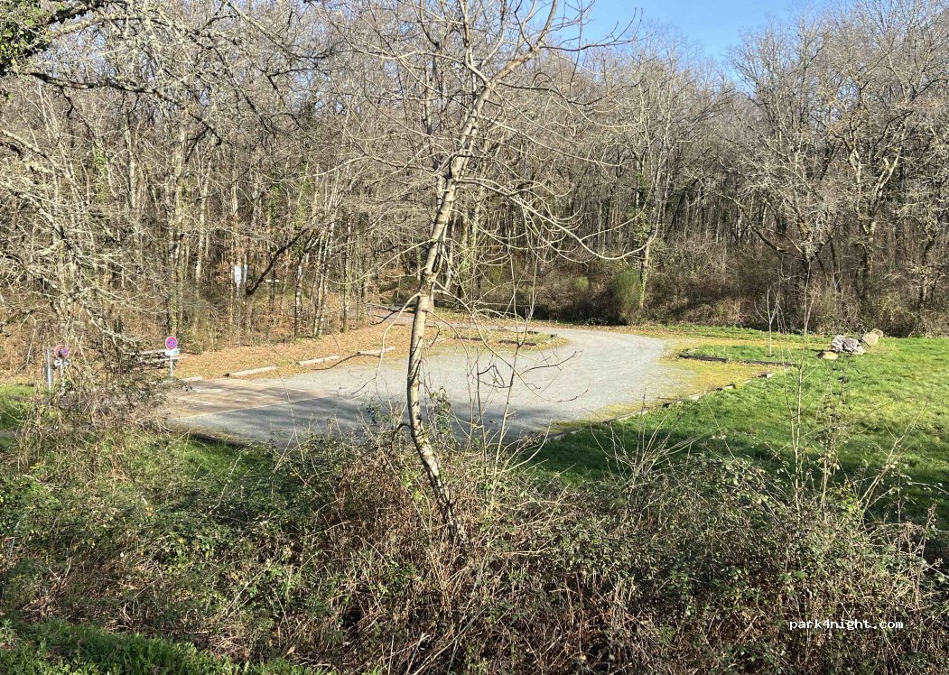 Parking pour camping car gratuit sans limite de hauteur au calme en pleine nature. Plus ou moins plat selon les endroits mais parfait pour une nuit !