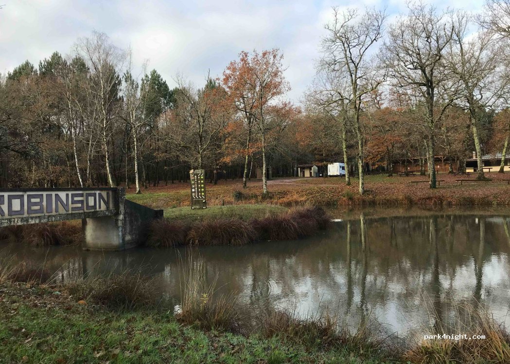 Residente de CHEPNIERS y conductor de autocaravana, recomiendo este lugar. Podrá disfrutar de un entorno agradable junto al estanque Robinson con un snack bar abierto de junio a septiembre (el restaurante ha cambiado). WC y agua disponibles, noche gratis. En el futuro surgirá una zona con todos los servicios. A 5 minutos del pueblo con panadería y pizzas para llevar también. Sois bienvenidos.