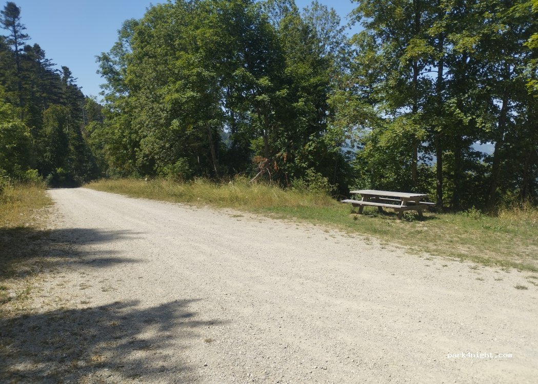 Route carrossable mais caillouteuse, grand espace pour se garer à plat. Banc et table de picnic. Départ de rando donc quelques randonneurs le matin. Sinon très calme. Attention, 1400m d'altitude, il peut faire froid la nuit.