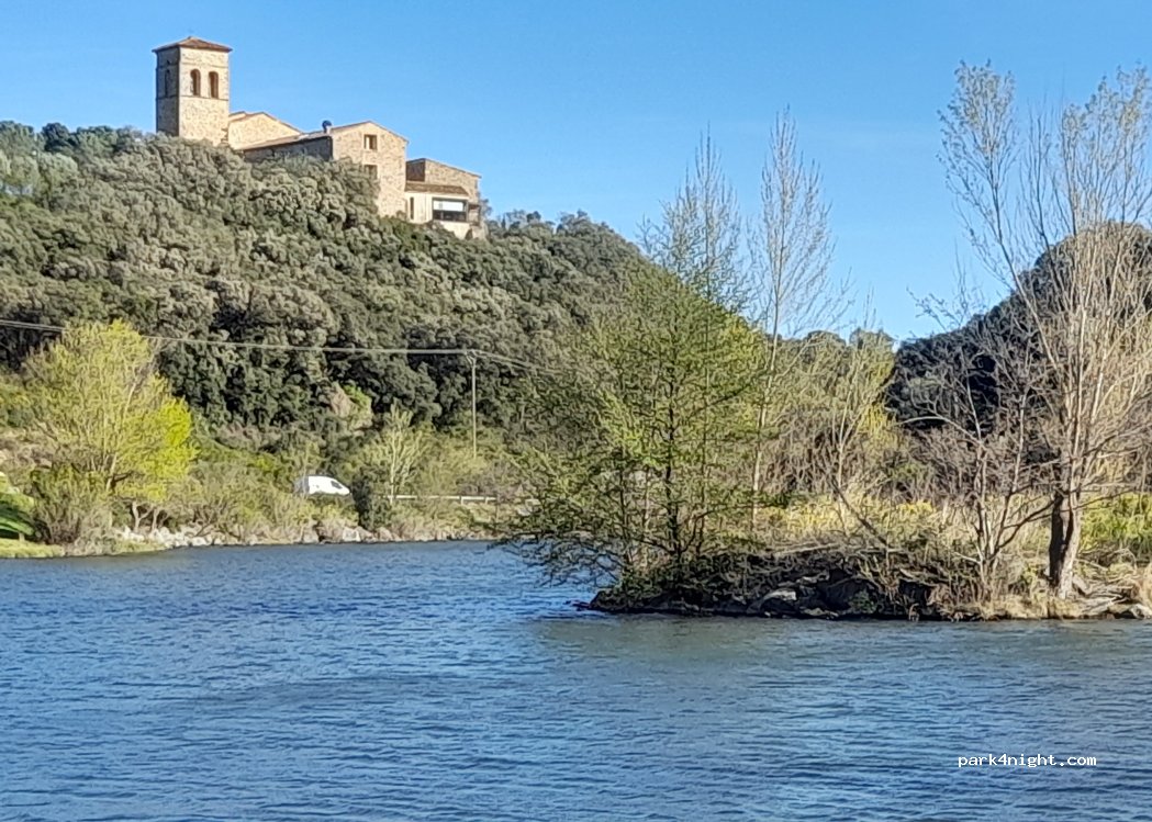 Nous sommes restés sur le parking en cendrée devant l’église car deux camping-cars étaient garés comme des riches. Le restaurant étant fermé jusqu’en juillet, l’employé de la mairie ne nous a rien dit. Nuit calme malgré la météo détestable. Pour repartir, notre GPS nous a emmené par une route passant par le barrage. C’est à éviter car la route se rétrécit de plus en plus avec des branches basses. Nous sommes passés tout juste avec forces manœuvres avec notre intégral de 7,2 de long et 3,1 de haut dans une épingle suivie d’un passage étroit (Maximum 2,7m de large) entre deux murets. Retournez par le village.