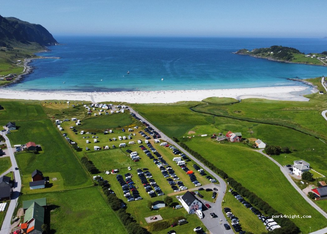 Super schöner Ort/Strand. Der Platz ist wirklich nicht der Hit, erfüllt aber seinen Zweck. Auf den Dünen in erster Reihe darf inzwischen nicht mehr geparkt/gezeltet werden und die Preise sind inzwischen auch etwas erhöht worden. Für die vorderen Plätze werden inzwischen 300NOK fällig (250 weiter hinten) 50 extra für Strom.