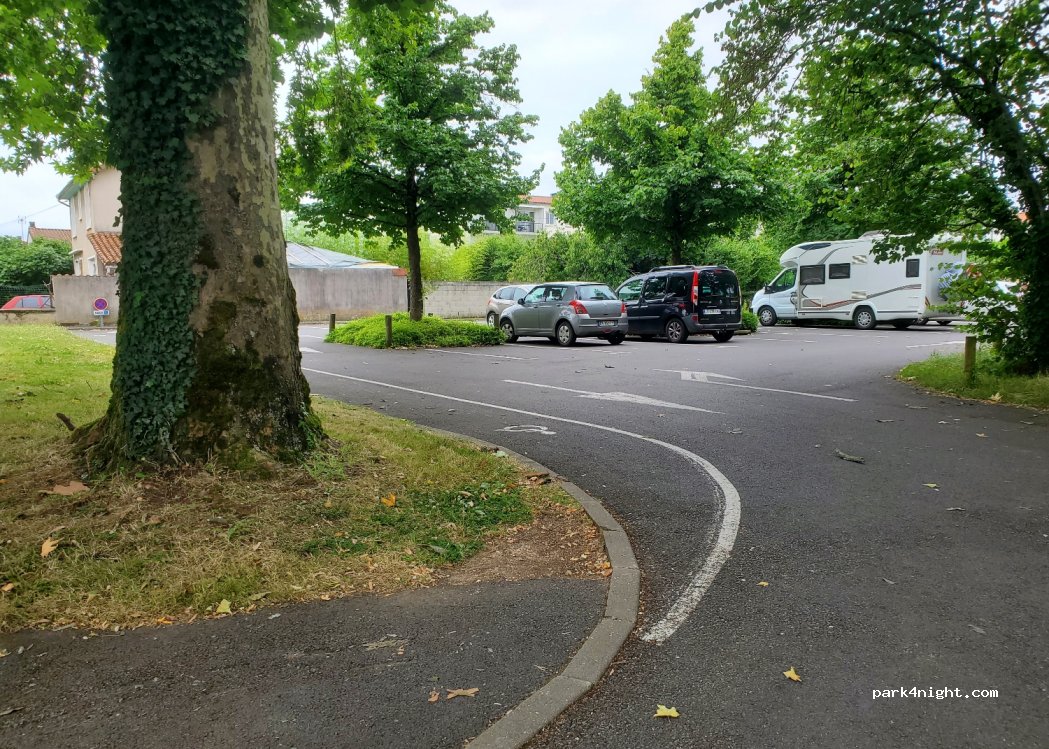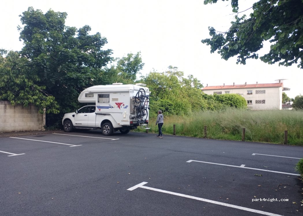 Shaded day parking in Niort opposite a park. Flat and quiet parking in theory.