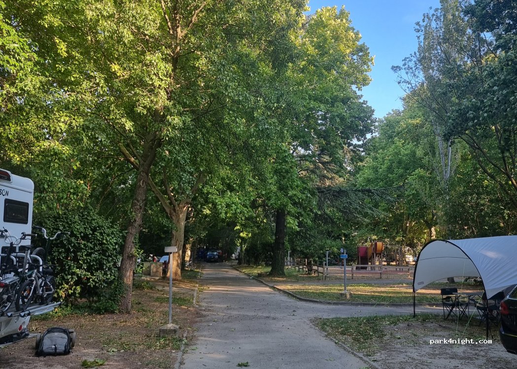 Très vaste et très ombragé on n'a pas beaucoup le soleil et les branches d'arbres touchent le toit du CC et coûteux pour le mois d'octobre. Pas d'eau pour nettoyer la caissette il faut faire des aller retour au robinet de la vidange qui n'est pas à côté. Nuit calme car pas grand monde à cette période. Parfait pour une étape d’un jour afin de visiter la ville qui est exceptionnelle.