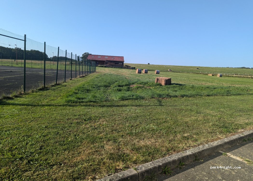 Parking village hall, well located without services, good for one night or a picnic stop with playground 50m, thank you for respecting this place.