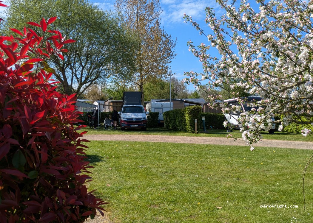 Visiting in April 2023. Had choice of pitch, not all flat. Sanitary facilities basic but usable, quiet at night.