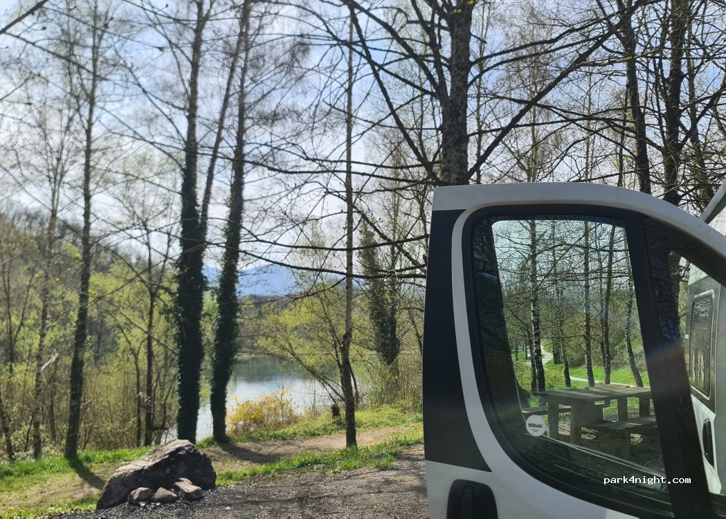 Excellent endroit. C'est le lieu des gens du coin... pêcheurs, promeneurs etc.. Les gens sont sympa. Tables et poubelles à disposition. Nuit partagée avec les grenouilles.. Lara Fabian est une petite joueuse à côté.. rires.. mais bon, c'est la nature et c'est ce qu'on cherche.