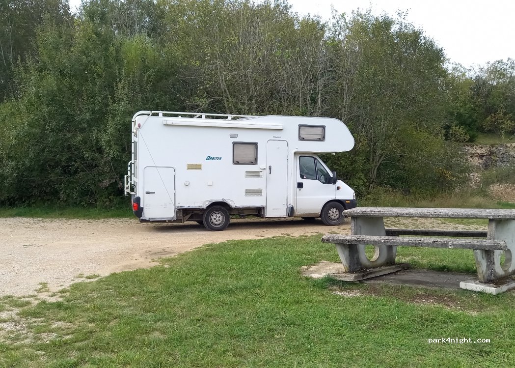 Je viens de passer la nuit au calme sur ce très bel endroit à préserver à tout prix tellement que l'ont y est bien. Peu de place où l'on peut être à plat, dommage, mais en même temps ça limite l'accès. La proximité des vaches n'est pas gênante. Vous avez le site géologique juste à côté et le site des dinosaures de la Lulle à 2km.