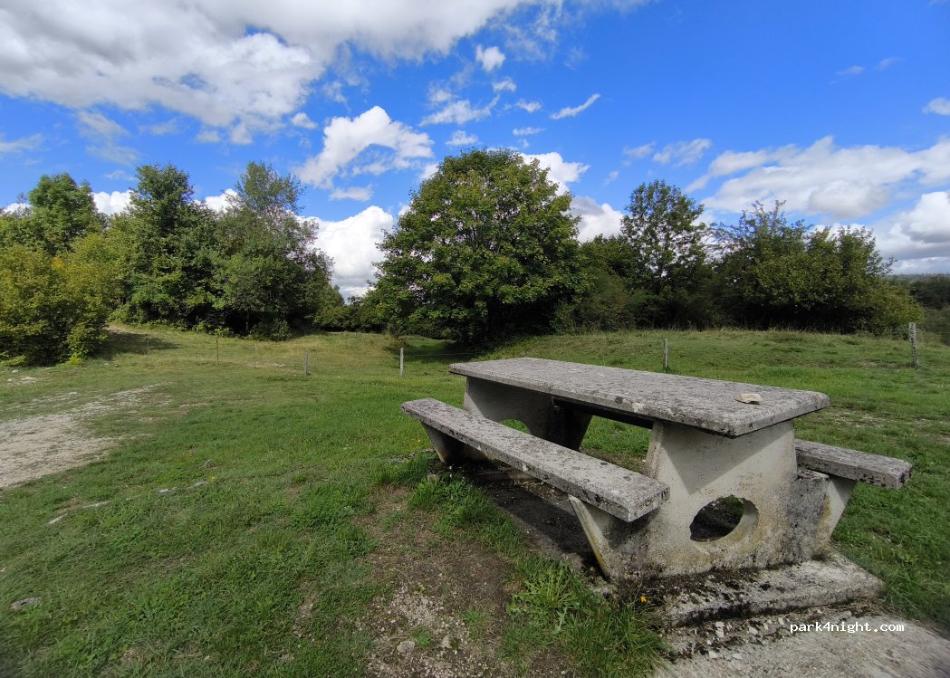 Très bon lieu de bivouac. Quasi plat, excellent panorama, non visible de la route, très silencieux, arboré et herbeux. Très propre, table de pique-nique. Balades, possibilité de laisser les chiens en liberté. Vaches proches mais sans aucune gêne. Je n'ai pas envie de donner mon avis sur d'autres lieux voisins où nous ne sommes pas arrêtés tellement ils sont sur le chemin forestier.