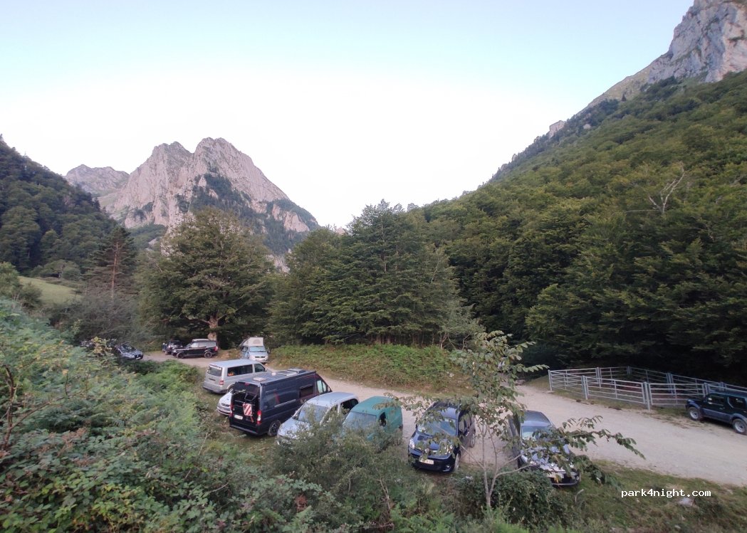 Nit súper tranquila al mig de la natura. Aparcament petit recomenat només si vols començar alguna excursió, no hi ha prou espai per aparcar, per la nit està ocupat per cotxes d'excursionistes. Hi ha pocs espai plans, abans d'arribar es pot trobar alguns espais plans al voral de la pista. Pista de muntanya en molt mal estat, pedregosa, estreta d'únic sentit i amb rampes força empinades.