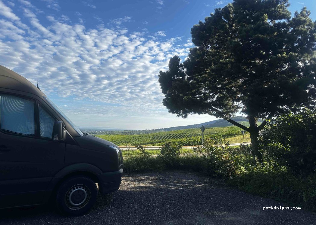 Die Aussicht auf die Weinberge ist sehr schön. Man steht direkt an der Straße, aber das ist nachts kein Problem (wenig befahren). Frischwasser ist auch vorhanden und gemütliche Picknkickbänke.